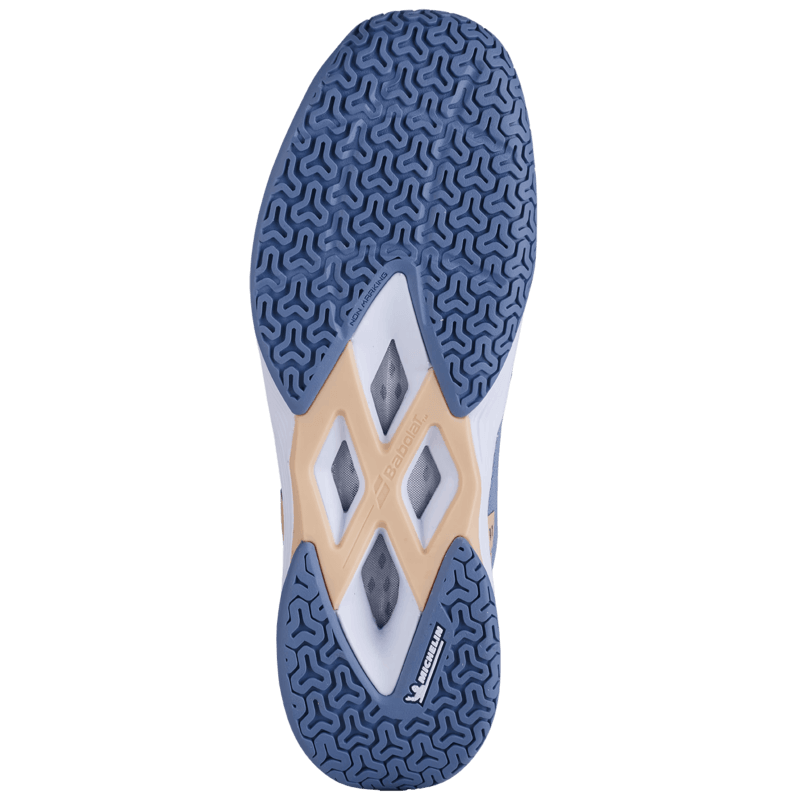 • Durabilité et adhérence : fruit du partenariat entre Babolat et Michelin, la semelle extérieure a été optimisée pour offrir une excellente accroche sur tous types de sols, tout en garantissant une grande résistance à l'usure. Les crampons ont été redessinés pour assurer un équilibre parfait entre adhérence, légèreté et durabilité.
